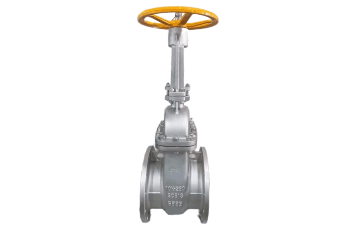 Gate Valve DN250 JIS 10K SCS13 is a 250 mm stainless steel gate valve with a JIS 10K flange connection, designed for on/off control in medium-pressure piping systems.